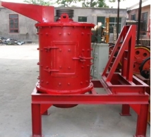 物料由機器上部垂直落入高速旋轉的葉輪內(nèi),在高速離心力的作用下,與另一部分以傘狀形式分流在葉輪四周的物料產(chǎn)生高速撞擊與粉碎,物料在互相撞擊后,又會在葉輪和機殼之間以物料形成渦流多次的互相撞擊、摩擦而粉碎,從下部直通排出,形成閉路多次循環(huán),由篩分設備控制達到所要求的成品粒度。
